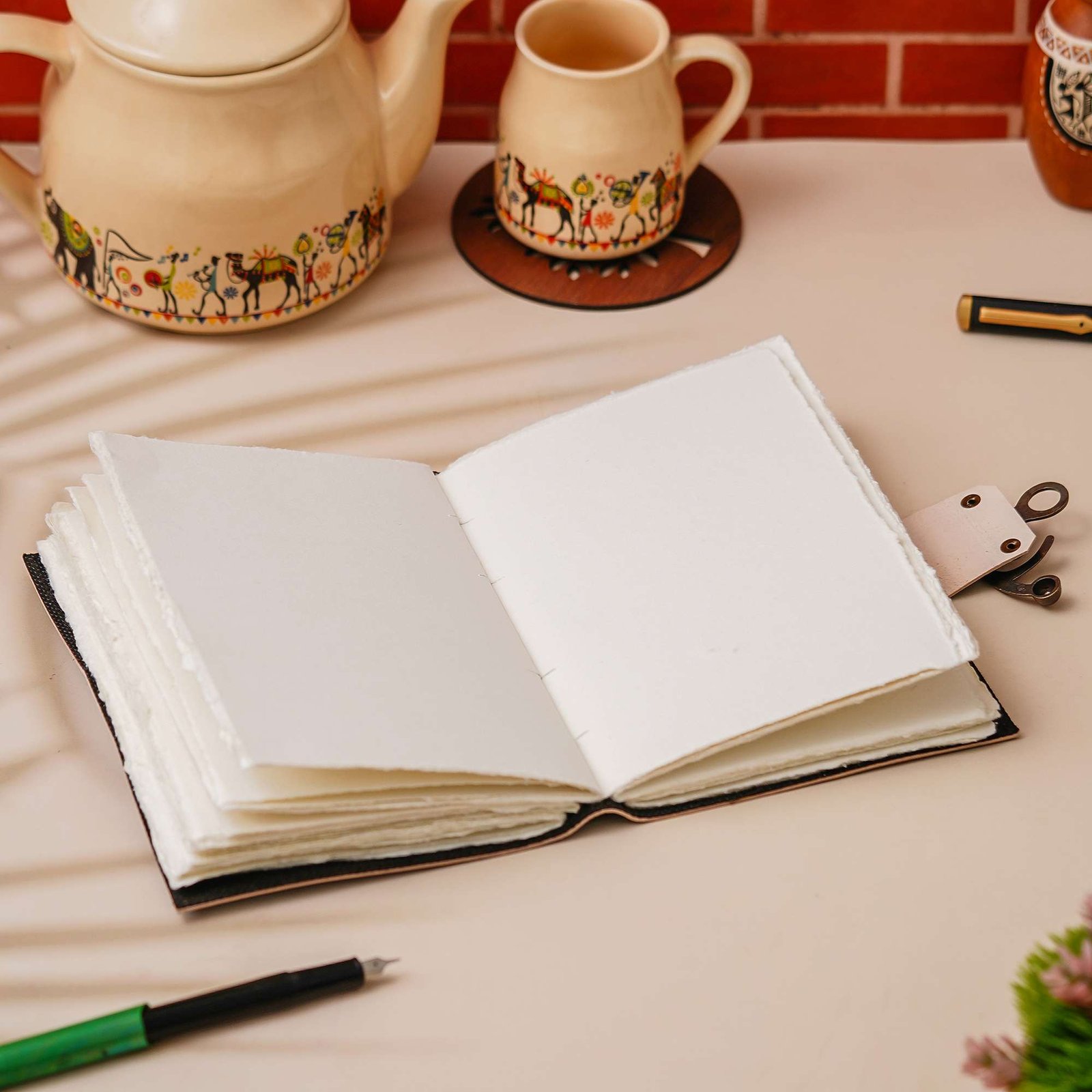 vintage handmade leather journal. Crafted with genuine leather, it radiates authenticity and charm, perfect for those who appreciate classic craftsmanship. The premium antique lock closure adds a touch of elegance and security, ensuring your thoughts and memories are safeguarded within its pages. Inside, you’ll discover 200 White handmade pages, providing ample space for your musings, sketches, and stories to unfold. Whether it’s for journaling, sketching, or planning, this versatile journal is a timeless companion for your creative endeavors. Treat yourself or a loved one to this exquisite piece, a celebration of tradition and creativity